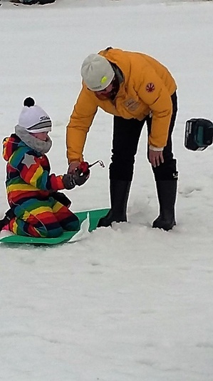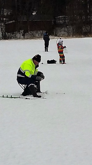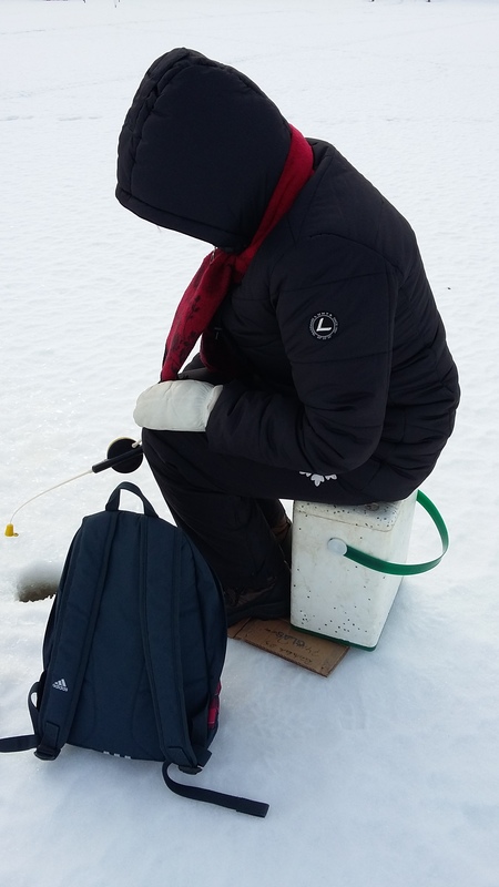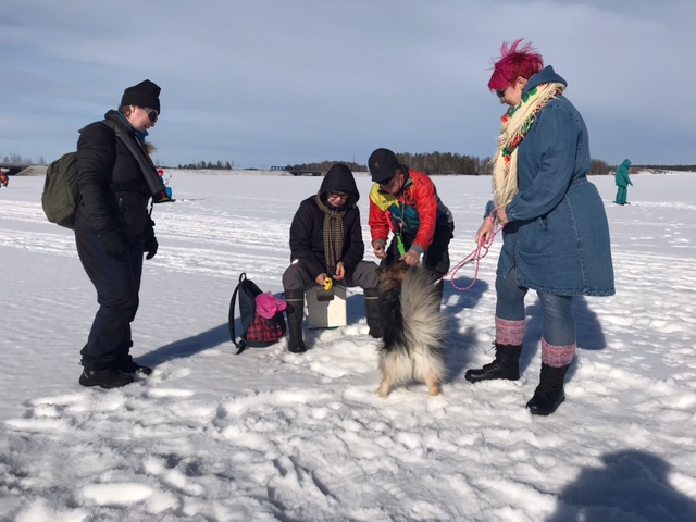 - Seijalla oli monia kannustajia pilkkireiän äärellä.