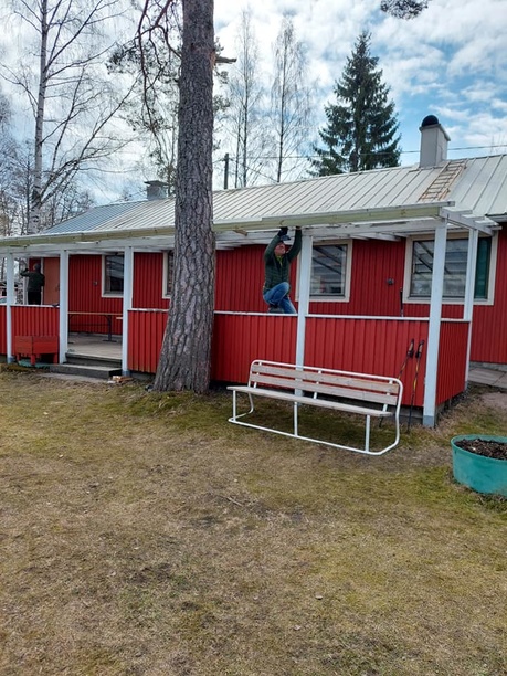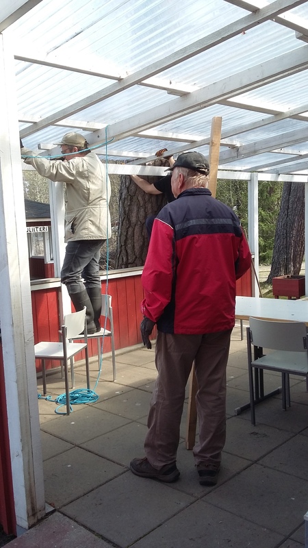 Kevättalkoot 7.5.2016 Lämmintä 20 astetta ja talkoissa yli 60 mökkiläistä.Terassin katto tuli kuntoon ja lettuliiteri puhtaaksi.On hyvä aloittaa kesänvietto kun on paikat kunnossa. |