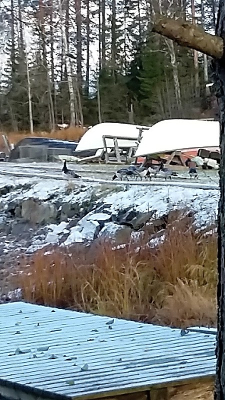 Valkoposkihanhia laiturilla ruokailemassa 2.11.2016 |