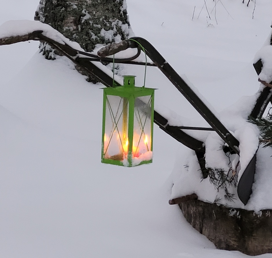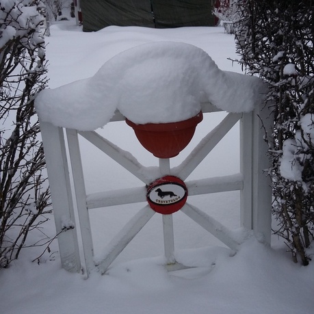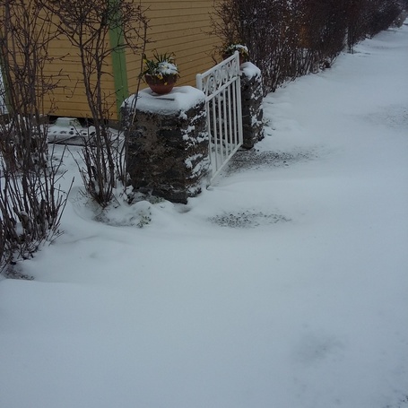 16.12.2017 Luminen portti ja lukki joka ihmettelee lunta.