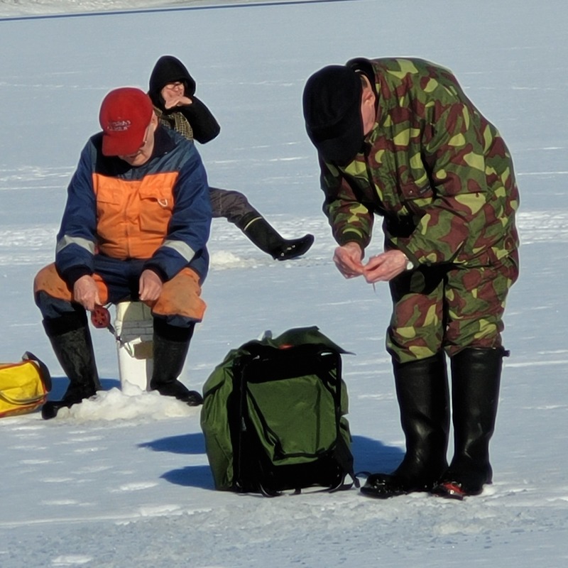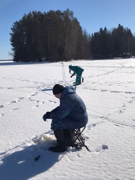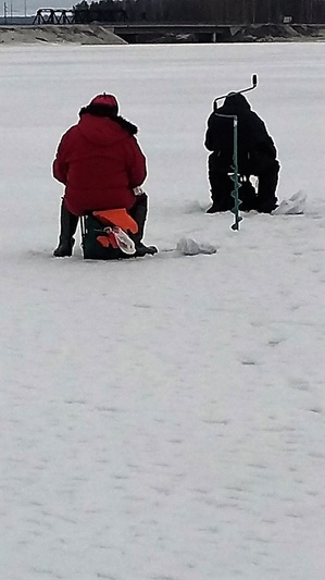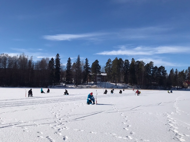 - Monta on pilkkijää jäällä kauniista säästä nauttimassa.