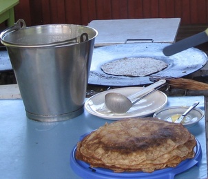 Aattona aamupäivällä myytiin hernekeittoa ja munkkeja.