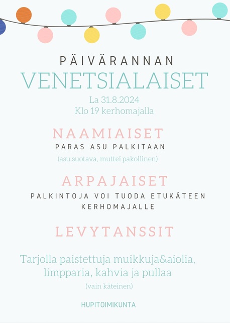 Lauantaina 31.8.2024. vietettiin Päivärannassa Venetsialaisia