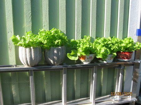 Salaattia voi kasvattaa näinkin. Eivät ole sateessa ja ei syö etanat.
